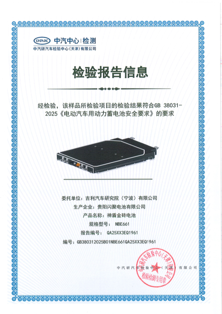 作为安全体系的物理载体,吉利自研自产的神盾金砖电池在本次分享会上被详细解读。它是吉利极致安全的“神盾”电池安全系统与行业领先的“金砖”电芯技术的结合体。今年5月8日,吉利成为国内首批通过GB 38031-2025电池安全新国标的企业,且所有验证项目均为一次性通过。其内部测试标准更为严苛,在国标24项测试之外,还主动增加了跌落、踩踏等12项测试内容。在电芯和电池包两个层级,共有23项测试标准远超“新国标”要求。